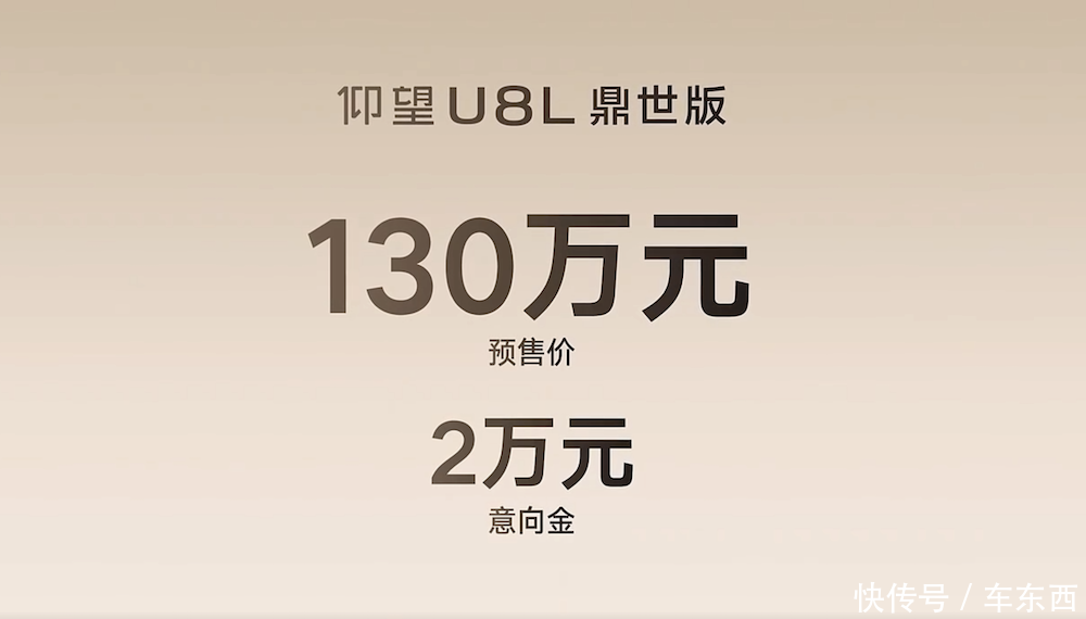 车东西7月31日消息,就在刚刚,比亚迪仰望U8L鼎世版正式开启预售,新车配备黄金车标,提供两种车身配色,定位全尺寸行政豪华SUV,预售价为130万元。