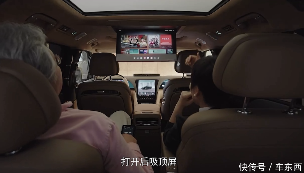 新车还配备21.4英寸电动折叠吸顶屏、智能冷暖冰箱、全景天幕等豪华配置,同时前排、二排均搭载独立头枕音响。